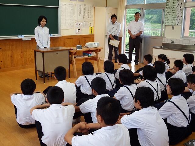 1年生の副担任で英語科の甲斐照美先生が,明日から子どもさんの出産に備えて休暇を取られます。また,甲斐先生の後任として田阪えり子先生が,来週の月曜日から赴任されます。今日は,生徒に対してお二人からあいさつがありました。