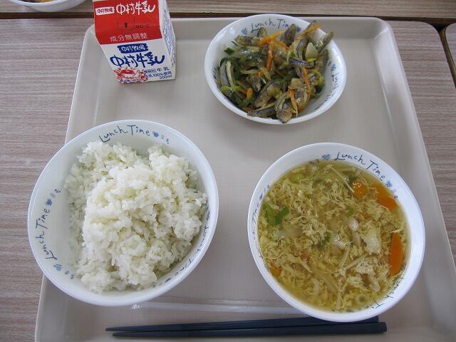 今日は、きびなごの南蛮漬けとたまごスープでした。おいしくいただきました。
