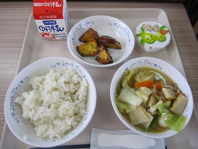 今日は、八宝菜に大学いもでした。おいしくいただきました。
