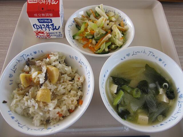 今日は、栗、しいたけ、しめじ、きくらげ等々入った「秋の香りごはん」でした。