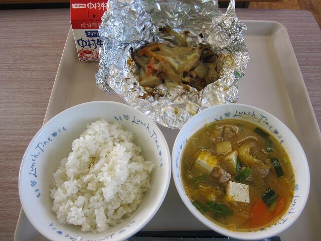 今日は、キムチ汁と魚のホイル焼きでした。おいしくいただきました。
