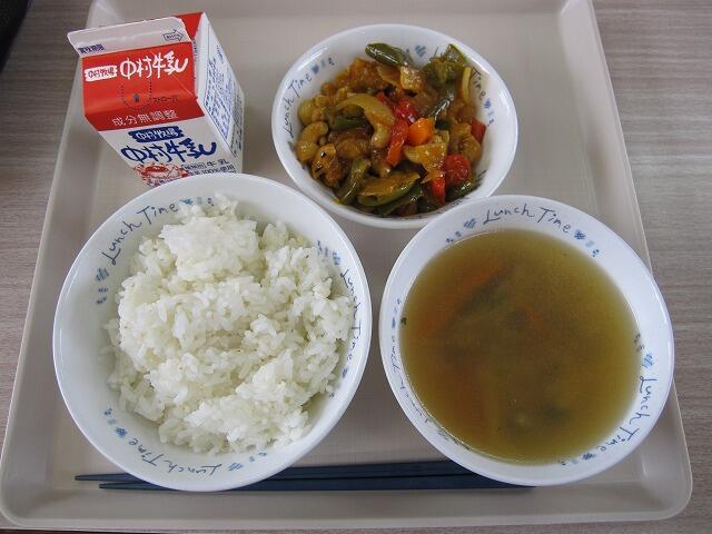 今日は、鶏肉のカシューナッツ炒めにきのこスープでした。おいしくいただきました。