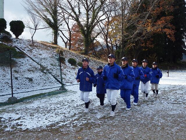 気温-1℃の中,野球部の生徒は元気に練習に励んでいます。