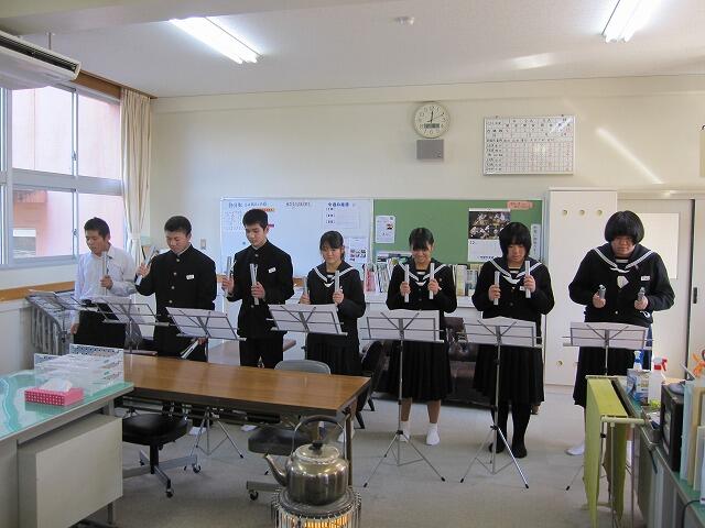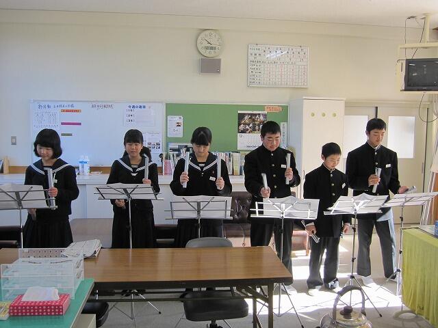 音楽の時間に練習した、トーンベルを職員室で演奏しました。
