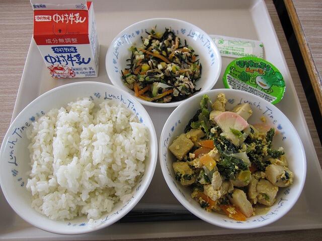 今日は、高野豆腐の卵とじとひじきサラダでした。おいしくいただきました。