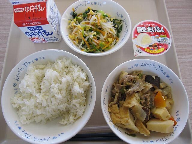 今日の給食は、厚揚げと豚肉の味噌炒めとデザートでした。おいしくいただきました。