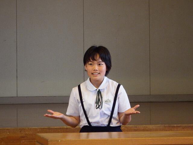 本日の全校集会は,スピーチ活動でした。3人の生徒が,「人の優しさを感じた経験」,「懐かしいあの絵本」というテーマで意見を述べてくれました。