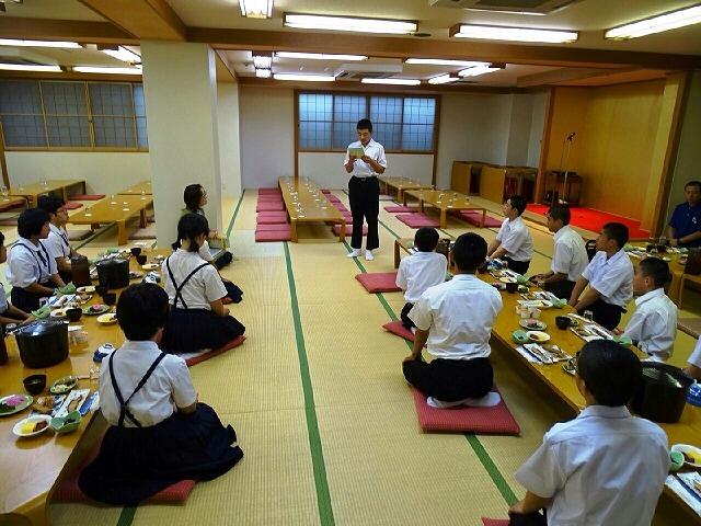 京都の宿舎に到着しました。みんなで夕食です。いただきます。