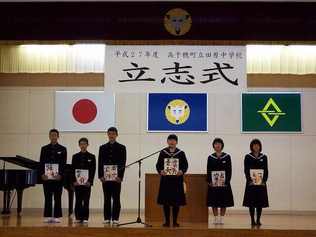平成27年度立志式が行われました。2年生6名が、力強く立志の誓いを述べました。立志式後、