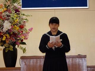 在校生歓迎の言葉では、本校生徒会長が先輩として優しく迎える言葉を述べてくれました。