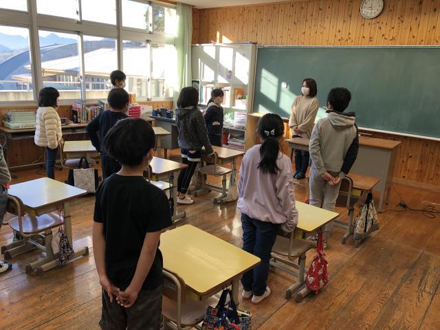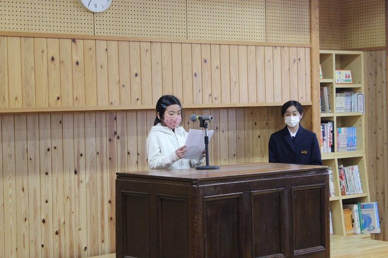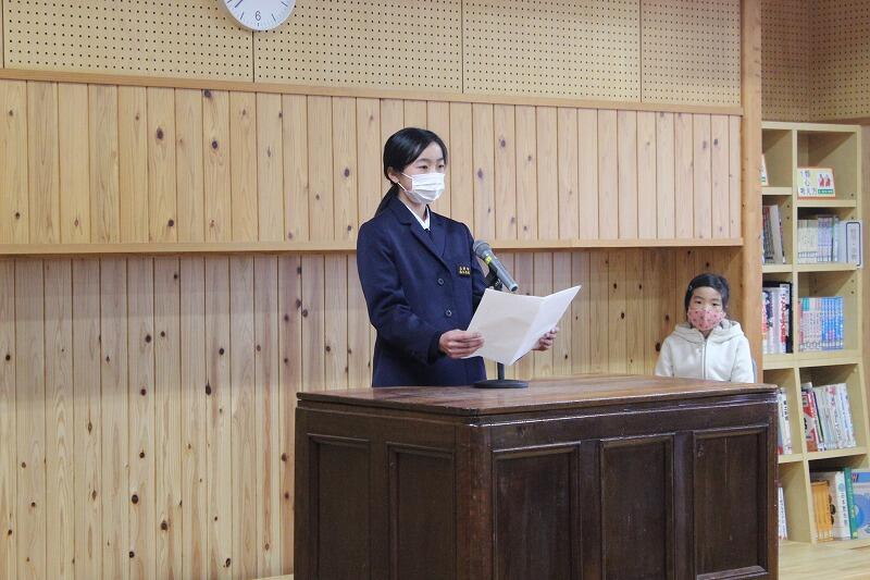 12月24日(木)に第2学期の終業式が行われました。この冬最強の寒波が来ていたため、3校時でも寒かったので児童生徒の距離を十分にとって、暖房の効く図書室で行いました。校長先生のお話の後、小学校代表として1年の工藤杏朱さんと中学校代表としてい年の廣木愛梨さんが、2学期の思い出や反省、3学期の抱負を堂々と発表することができました。上野小中学校の児童生徒全員が楽しい冬休みを過ごし、3学期野の始業式に元気に登校して欲しいです。