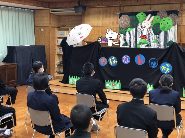絵本だけでなく、中学生にはペープサート劇の披露もありました。