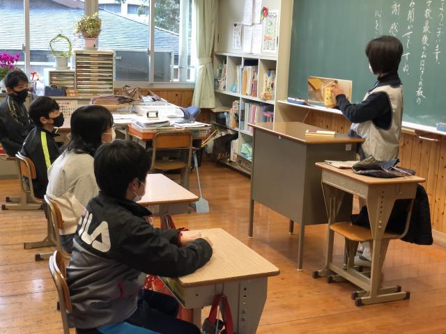 上野小・中学校では、「おはなしの森」のみなさんが、朝の読み聞かせに来てくださいます。