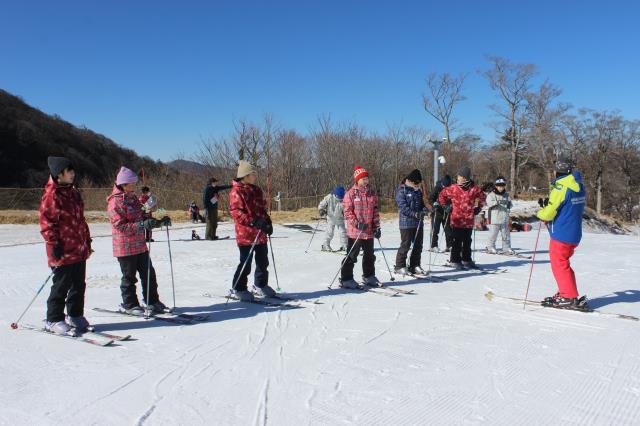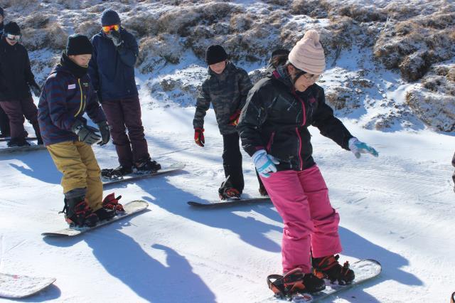 子どもたちはスキーとスノーボードに分かれて練習をしました。