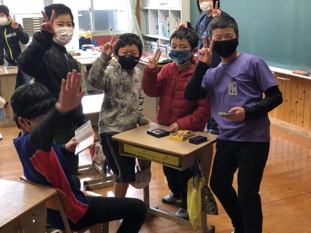 各教室では、トランプや百人一首、新聞紙を長ーくつなげたりなど、こちらも子どもたちの笑顔が見られました。