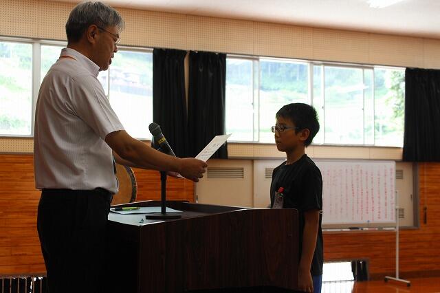 12月24日(火)に上野小・中学校で2学期の終業式が行われました。式の中で小学校の代表として1年生の佐藤優史さん、中学生の代表として1年生の甲斐彩乃さんが、2学期の思い出や反省、3学期に向けての抱負を発表しました。どちらの児童・生徒も堂々とした態度で、立派な発表ができました。