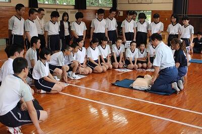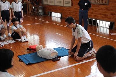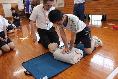 7月2日(火)の6校時に中学生全員対象で、心肺蘇生法の講習会がありました。いざというときに、冷静に対処できるように真剣に講習を聞き、実習を頑張っていました。「命の大切さ」について、考えることができたようです。