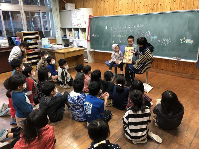 朝の時間に「おはなしの森読み聞かせ」が行われました。