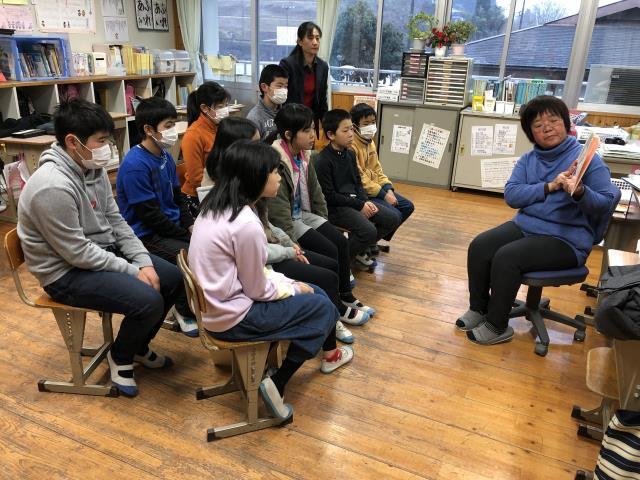 上野小・中学校では、「おはなしの森」のみなさんが、朝の読み聞かせに来てくださいます。