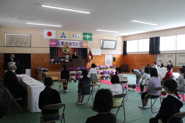4月9日(木)に第74回上野中学校入学式が行われました。10名の新入生が、真新しい制服に身を包み、少し緊張した面持ちで式に臨みました。新入生氏名点呼では、全員が大きな声で返事をし、上野中学校の新たな風を感じました。在校生歓迎のことばでは、生徒会長の甲斐湊仁さんが先輩らしく頼もしいお祝いの言葉を述べました。新入生誓いのことばでは、新入生代表の安在美結さんが中学校で頑張りたいことを堂々と発表しました。10名の新入生が、早く上野中学校に慣れて、活躍して欲しいと思います。