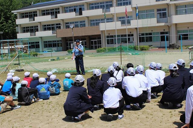 みんな、真剣な表情で警察官の話を聞いていました。自分の命は「自分で守る」と確認をしました。