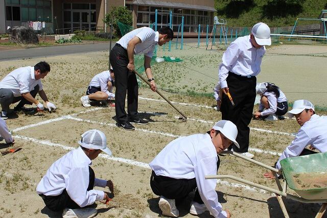 今年度1回目の玄武タイムがありました。玄武タイムは小学生・中学生全員で普段のの清掃でできないところを清掃します。今回は、花壇や運動場の草抜きをがんばりました。
