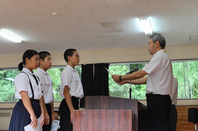 中学生の県大会選手推戴式が行われました。