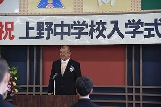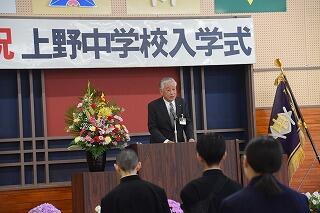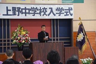 4月9日(火) 武道場にて、今年度新たに上野中学校に入学する新入生7名の入学式を行いました。