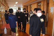 高千穂中の校舎に入るのは初めての子もいて、緊張ぎみの足取りでした。