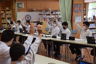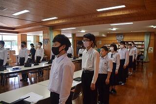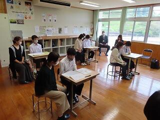 高千穂中に着くと、それぞれの学級の朝の会から参加しました。授業も一緒に受けます。