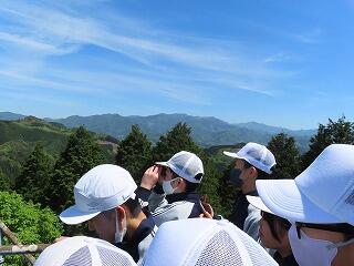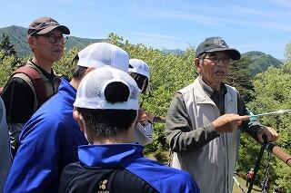 山頂に着くと、幸男さんから「高千穂から見渡せる周囲の山々」の話が聞けました。阿蘇の五岳が一望できることも驚きです。