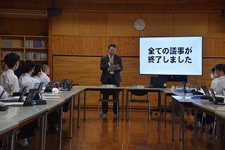 令和5年度修了式の後、小学校と中学校に分かれて集会を行いました。
