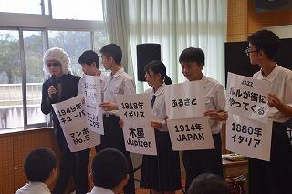 高千穂中の1、2年生は各学年3学級ありますので、2時間ごとのローテーションで全学級の生徒と一緒に過ごすことができました。