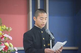 最後に、1年生代表生徒のあいさつです。