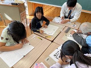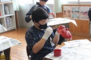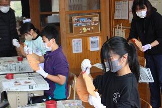 神楽面は形が凸凹していたり、細かい部分も多かったため、普段の授業以上に高い集中力が必要でした。子どもたちからは「大変だった」といった声が聞こえてきました。