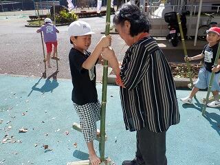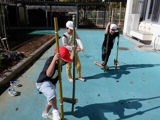 棒を回転させるときの手の動きが難しいのですが、2年生は上学年の動きをよく見て、