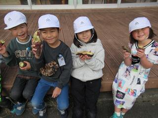 午後は、場所を移動して、みんなでなかよくお弁当をいただきました。この日は、「お弁当の日」でもあったので、子どもたちが「卵焼きを焼きました」「おにぎりは自分で作りました」と、うれしそうに報告していました。
