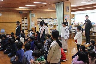 図書担当から多読賞の発表があり、冊数に驚いていた子どもたちです。
