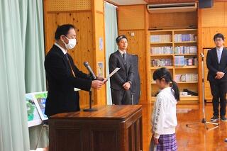 2学期終業式が終わった後、小中別に分かれて集会が行われました。始めに表彰があり、校外では、絵画作品や造形作品の表彰が行われました。校内では、多くの児童が多読賞に表彰されました。1番多い児童で、108冊の本を読んでいました。