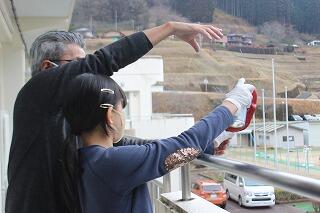 2月12日、3・4年生が運動会や文化発表会で披露した高千穂の伝統芸能「棒術」を