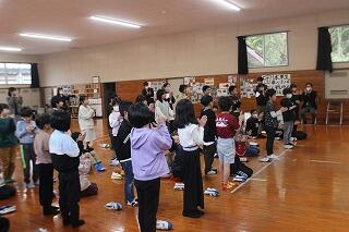 前日の雨の影響で、1・5年生は武道場、2・3・4・6年生は上野体育館で実施しました。