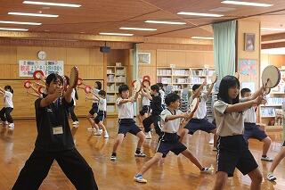 2月17日、5・6年生から3・4年生に向けてエイサーの伝達会が行われました。