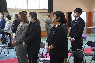 新入生入場のあと、開式の言葉です。中学校教頭が行いました。