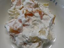 今日の献立手のフルーツクリームは、小学6年生と中学3年生のリクエストメニューです。