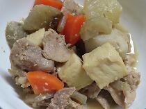 麦ごはん  とんこつ煮  ちくわとわかめの和え物  豆乳大福  牛乳
