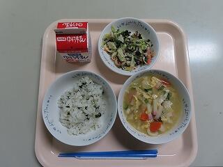 今日の献立の洋風かきたま汁は中学3年生のリクエストメニューです。