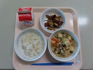 麦ごはん  厚揚げと豚肉のみそ炒め  ちりめんの酢の物  牛乳