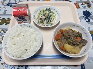 麦ごはん  肉じゃが  わかめとちくわの酢の物  牛乳