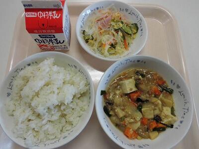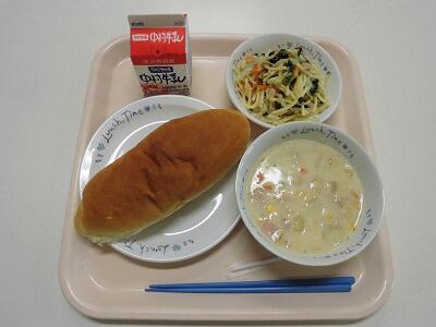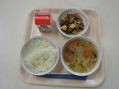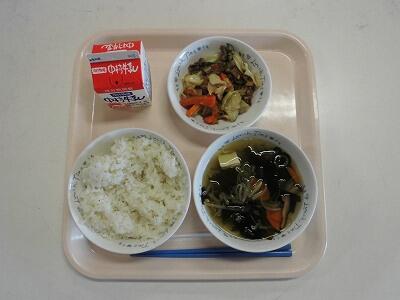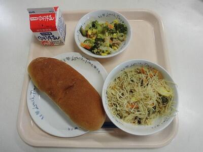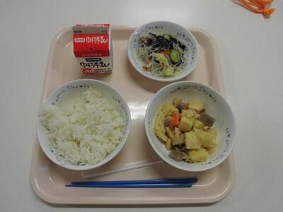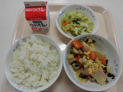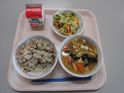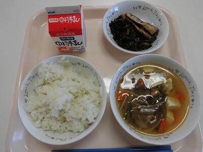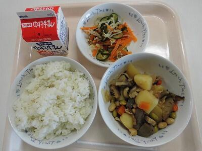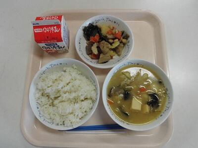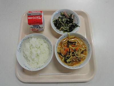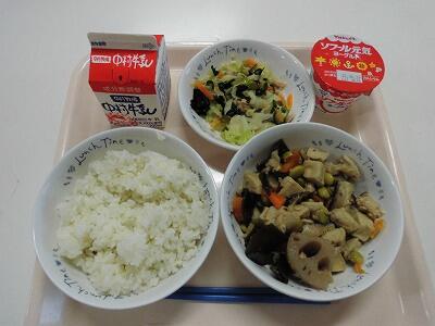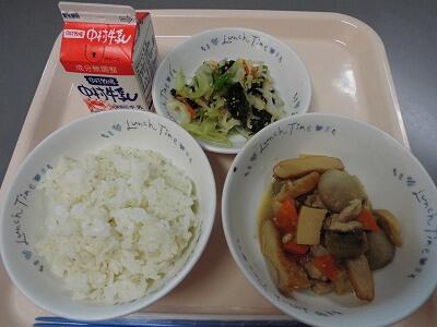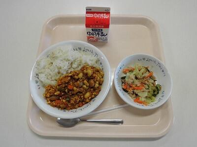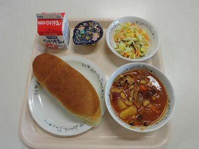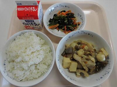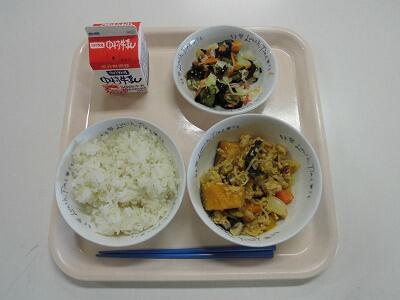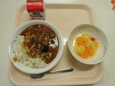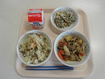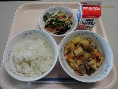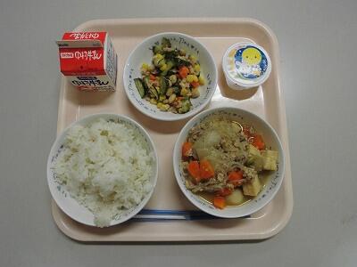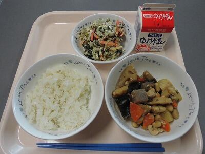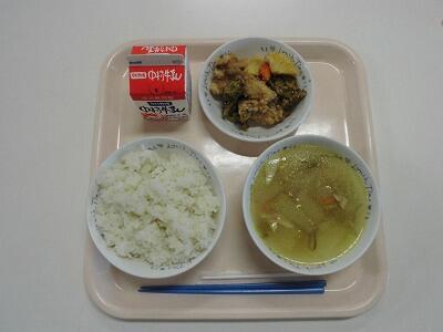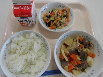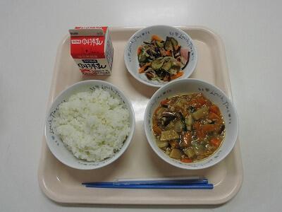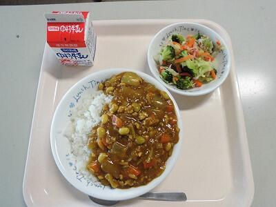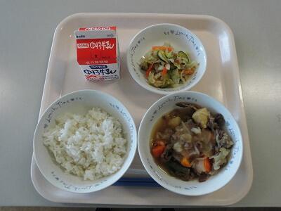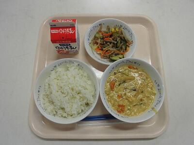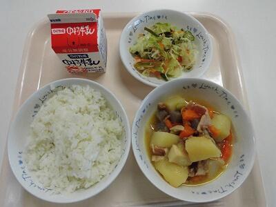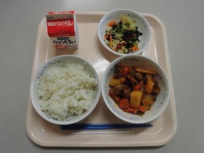 根菜カレーライス ブロッコリーサラダ 牛乳