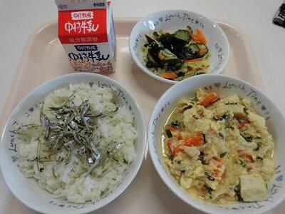 千切り大根の炒め煮 かぼちゃプリン 牛乳